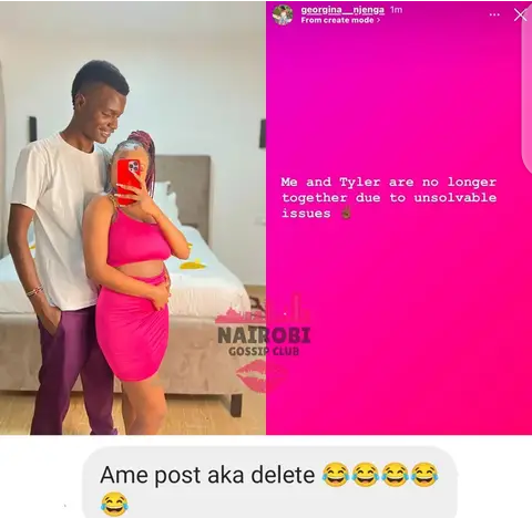 Earlier on social media, the mother of one went ahead to post a cryptic message before deleting it as she went ahead to tell her fans that she is no longer together with Tyler Mbaya who happens to be her baby daddy as well. According to her, they are not together anymore due to issues that they cannot be able to solve together. Do you think its true the couple have broken up or are they just chasing clout?